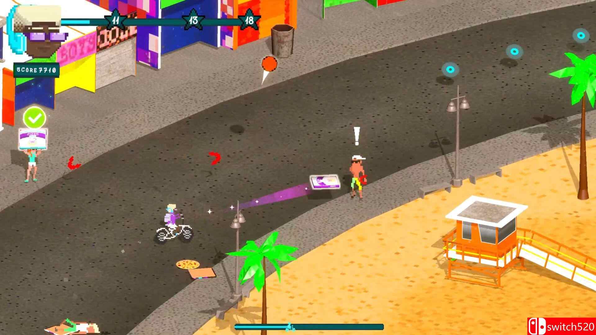 《送餐小子》是一款动作冒险类(ACT)游戏,《送餐小子》是一款复古街机风格的动作游戏:将 1980 年代经典的报纸派送游戏与 2020 年代的外卖送餐服务结合起来。玩家骑着自行车穿梭城市街道,投掷披萨完成精准送达,同时击败愤怒的顾客,以获取更高得分并解锁新的城市与挑战。switch520