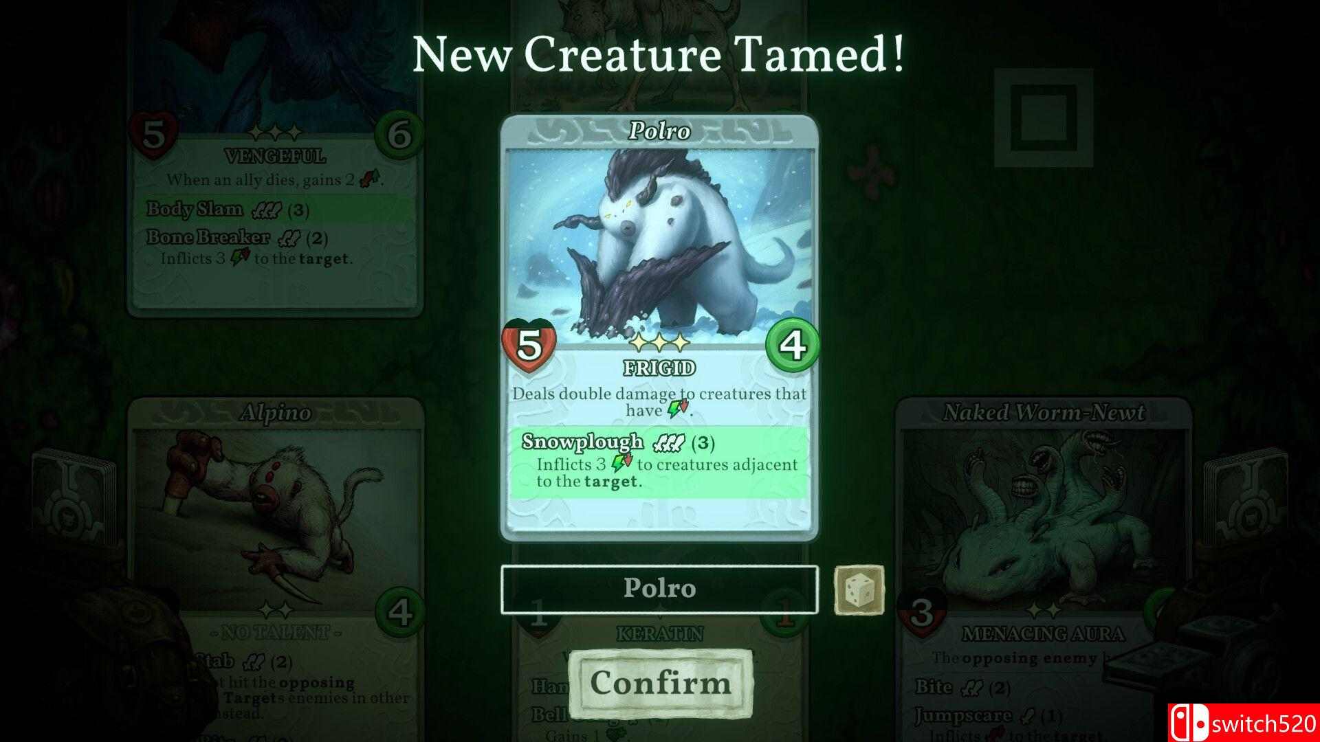 《驯牌师》是一款策略类(SLG)游戏,在这款融合卡组构筑与怪物捕捉元素的回合制Roguelike中,击败敌人、收服卡牌,与它们一同踏入深渊。你会选择消灭,还是驯服?switch520