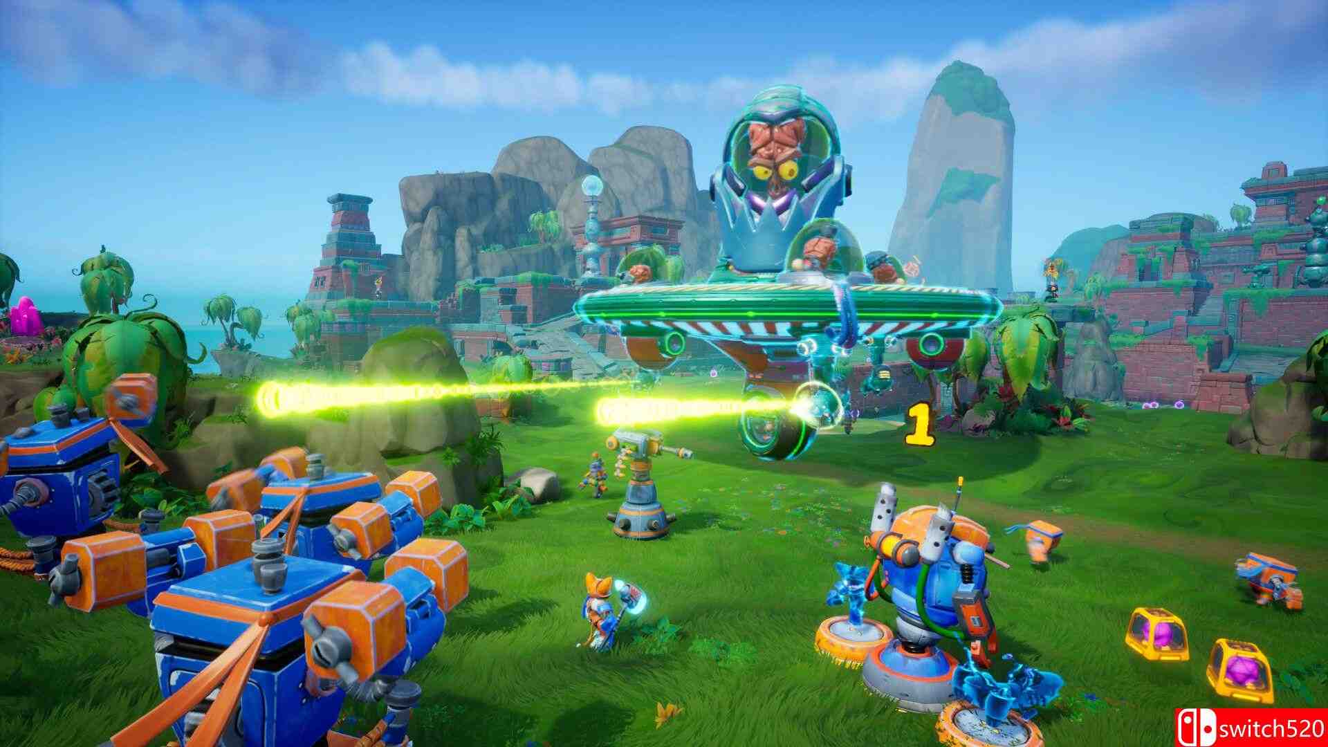 《脑怪来袭!脑晶保卫战》是一款动作冒险类(ACT)游戏,这是一款结合了动作与策略元素的游戏,玩家需要收集脑晶,建立基地,并指挥机器人军队击败那些诡异的“瓶装脑怪”外星人!亲自操控英雄角色奇普或爪兹冲锋陷阵,或是在合作模式中同时操控两位角色。注意那些被弹出的外星脑子,你可以把它们踩爆!switch520